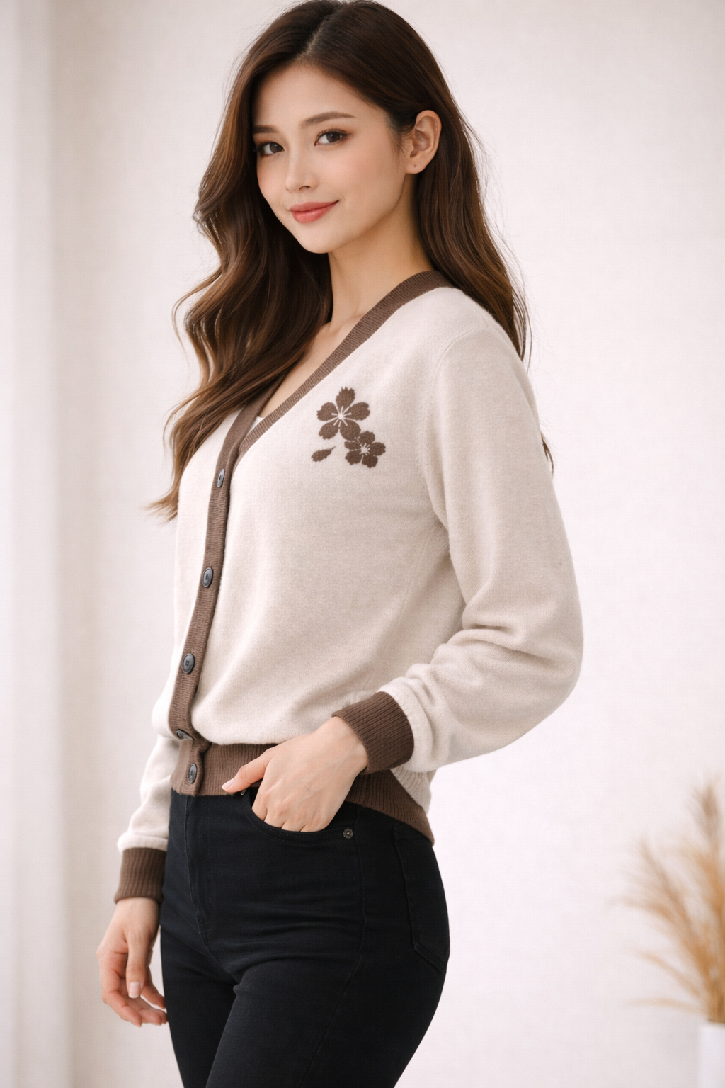 Knitted Cardigan with Hope Blooms Again Logo
