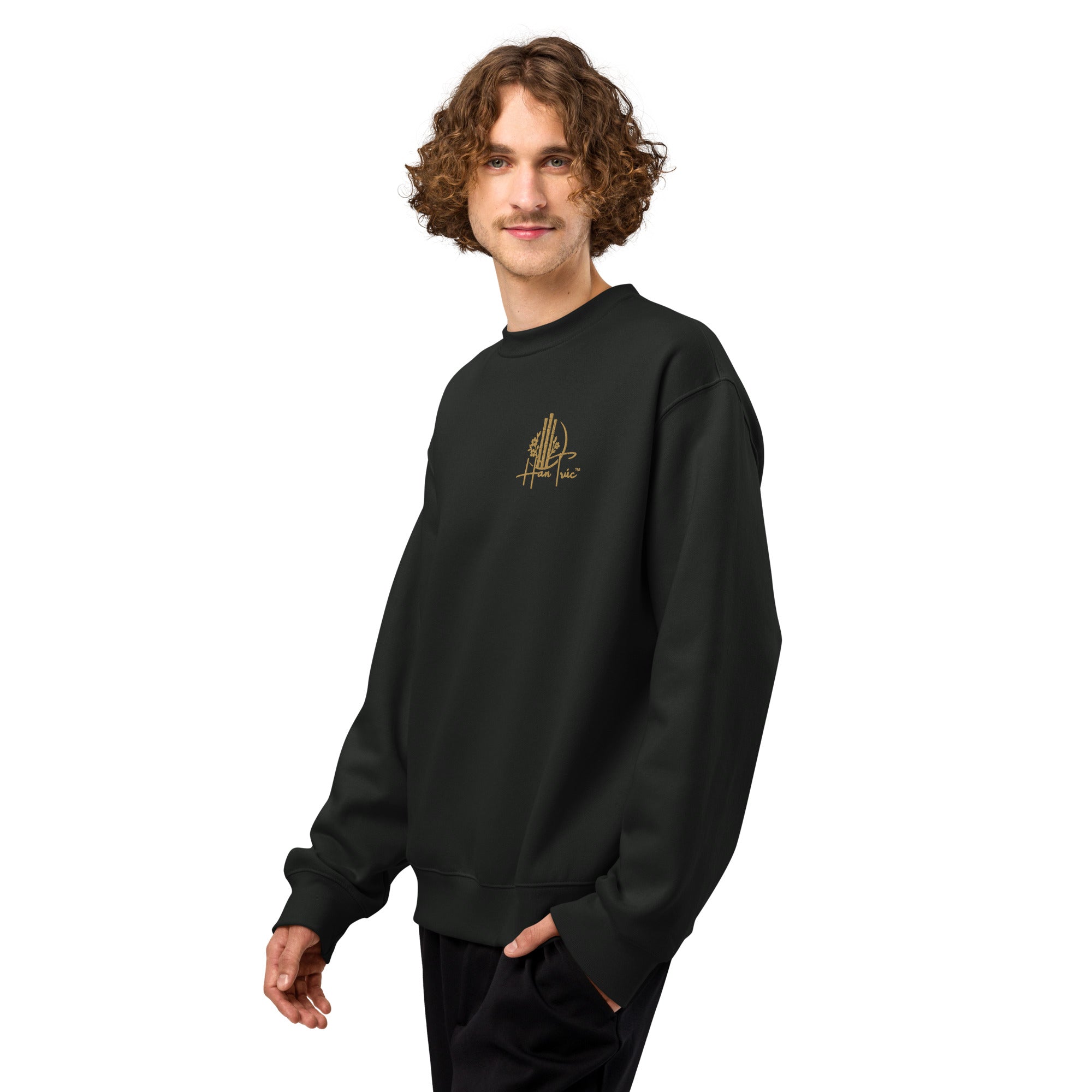 Oversized Heavyweight Sweatshirt with Embroidered Dark Gold HanTrúc Logo