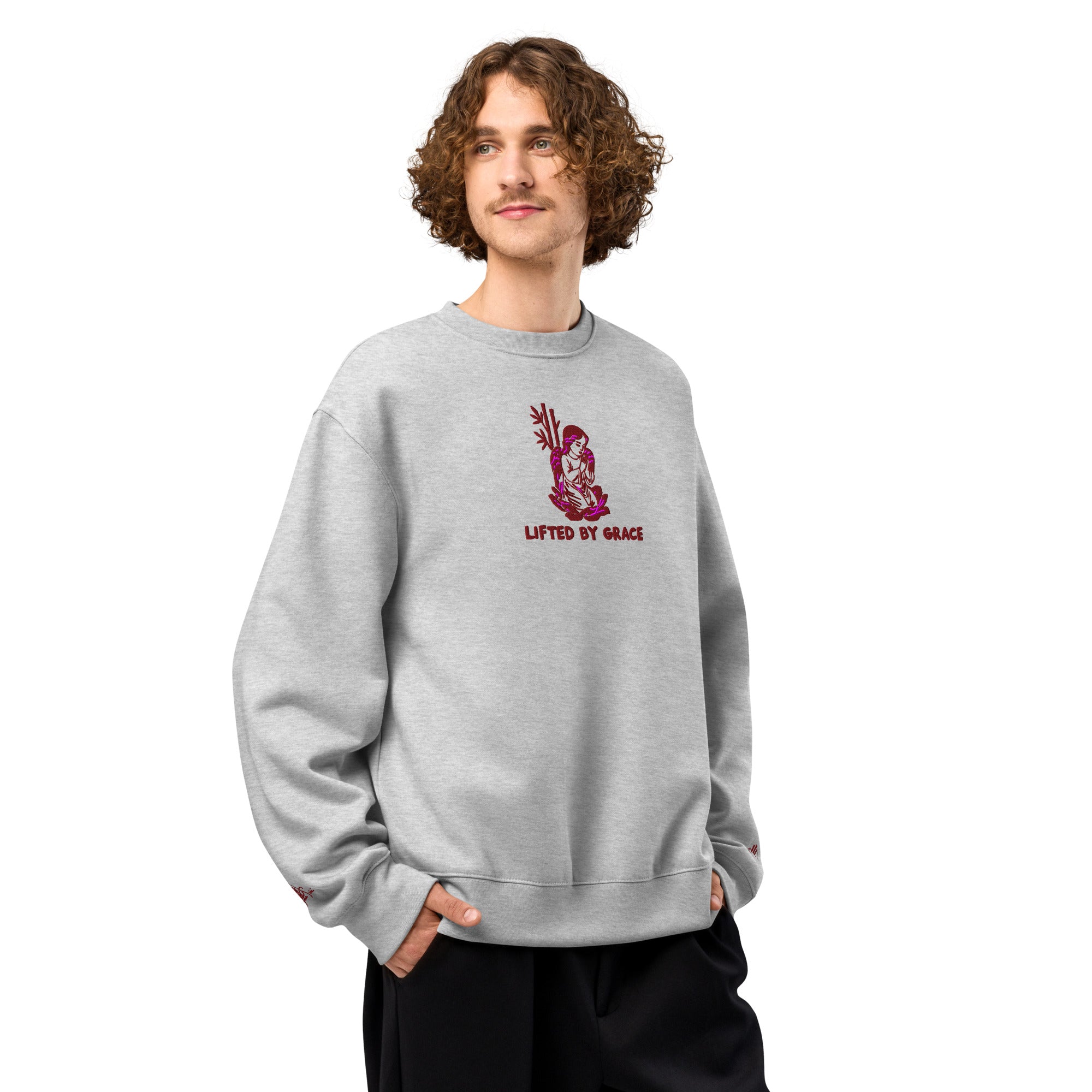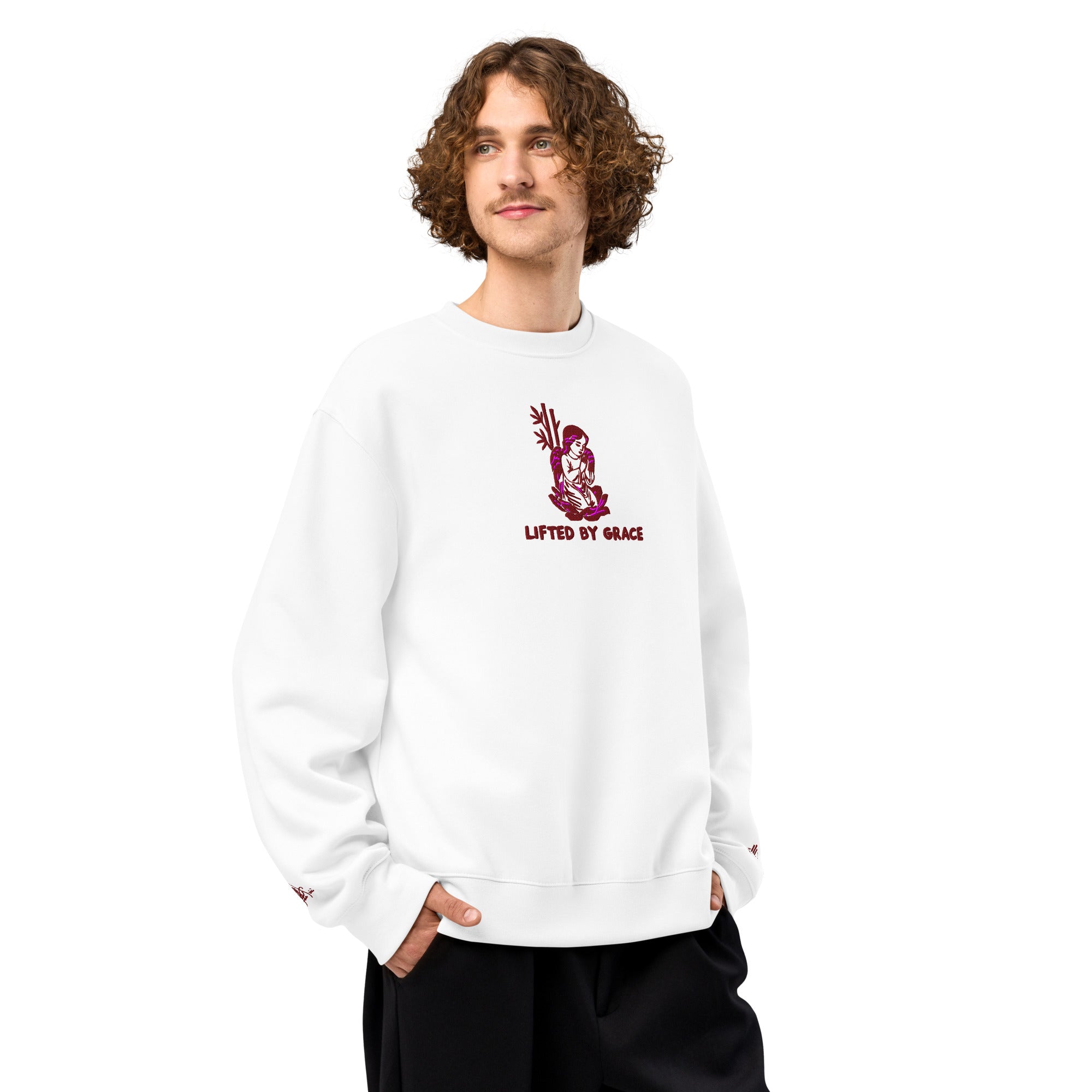 Oversized Heavyweight Sweatshirt with Embroidered Lifted by Grace theme with sleeves with HanTrúc Logo